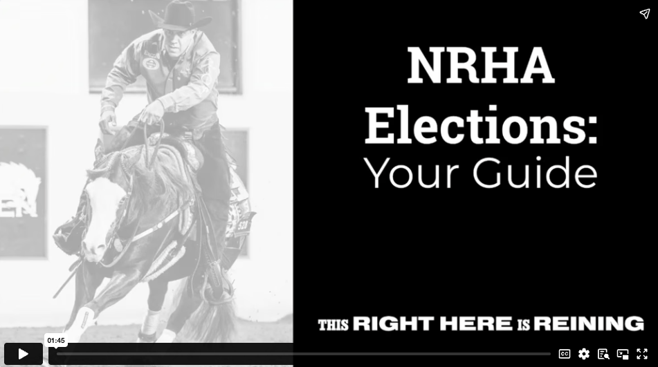 The sport of reining brings members together to enjoy the horses, competition and community. Each year, members are given the opportunity to nominate and vote for peers to represent their ideas, vision and expertise on the NRHA Executive Committee and Board of Directors.
