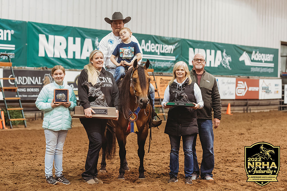 “We purchased him a year ago and have been hauling for an NRHA world title. Right now, he’s sitting near the top in the Intermediate and the Limited, and he’s been a really fun horse all year,” Pole said of the 10-year-old stallion, is by Friday Night Shiner out of BB Holly Doll.