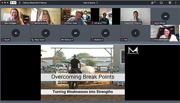 NRHA Manager of Youth, Professional and Affiliate Programs Sara Honegger says she is excited for the second series. “I believe all of the members who joined in the first sessions found so much benefit in and out of the show pen,” she said. “Gil has a great way of connecting with the youth and simplifying mental toughness to where it seems very attainable to everyone. Leading into the NRHA Futurity and Adequan® North American Affiliate Championships is a perfect time to sharpen that skill set.”