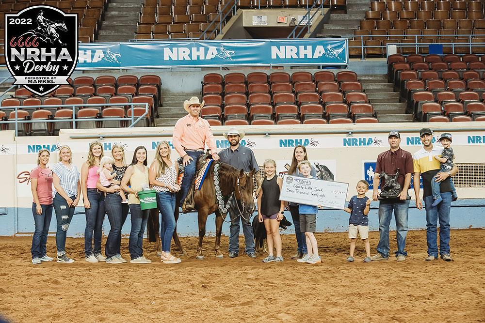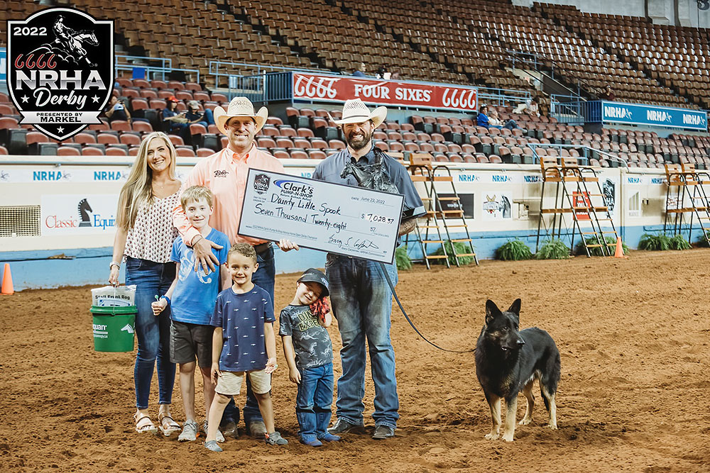 Dainty Little Spook and Brandon Brant were the big winners of the Clark’s Pump-N-Shop Novice Horse Open Derby Wednesday, June 22, as the 6666 NRHA Derby presented by Markel marches through its final week.