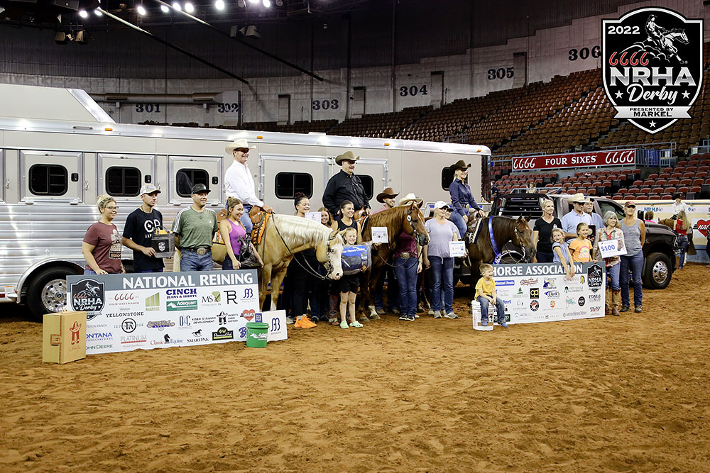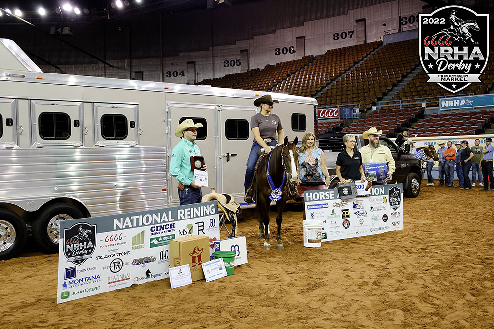 The Non Pro Derby Masters saw a three-way tie for first place. Lance Griffin, an NRHA Two Million Dollar Owner, scored a 216.5 on Spooks Gotta Tinsel. The four-year-old stallion, by NRHA Two Million Dollar Sire Spooks Gotta Gun out of Tinsel Tiara, is known as “King,” and makes showing fun.