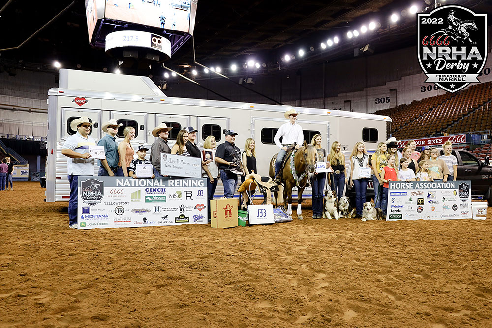 Consistency has been the name of the game for Jack Medows and stallion Tribbiani throughout the week at the 6666 National Reining Horse Association Derby presented by Markel. Initially tying for the Non Pro Derby preliminary lead and winning the $20,000 Colston Paving Inc. Non Pro 4-Year-Old Stakes Championship on Tribbiani and the $15,000 Clark’s Pump-N-Shop Novice Horse Derby on Jewells, it seemed like Medows’ week couldn’t get much better.