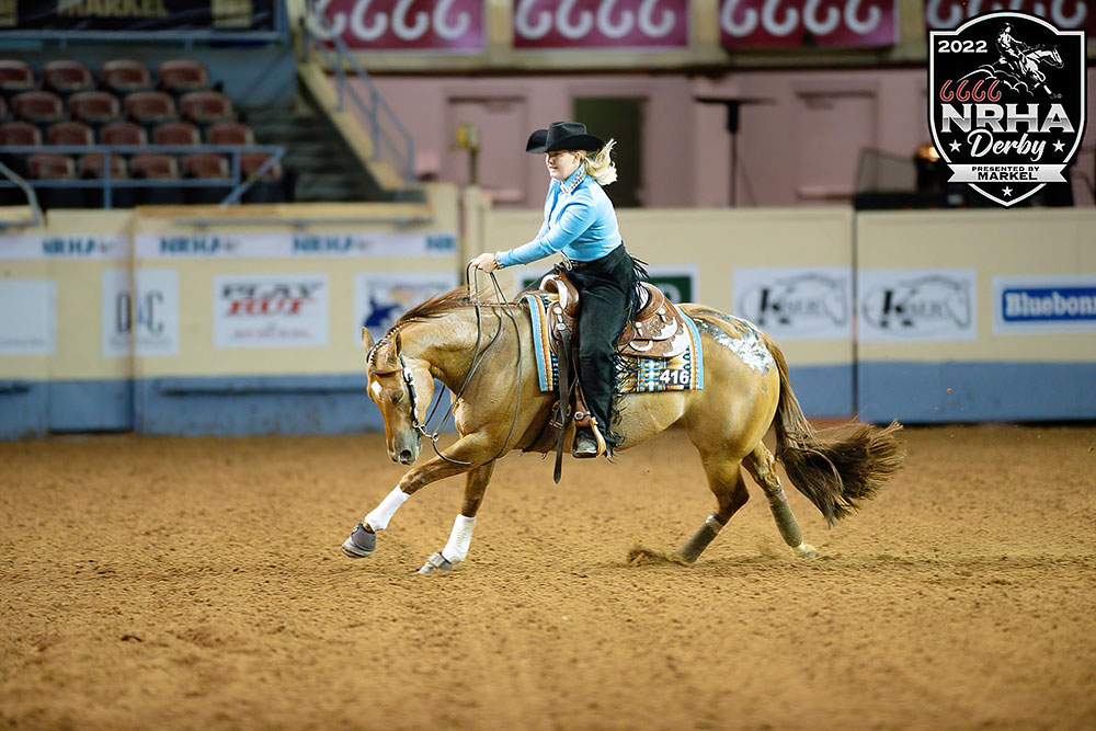 When Jenn Kasper set her sights on the 6666 NRHA Derby presented by Markel, she had one goal in mind; make the Non Pro Level 4 Finals for the first time. When the final results had been tabulated, she and her horse, A Cool Backstory, had squeaked into the Finals.