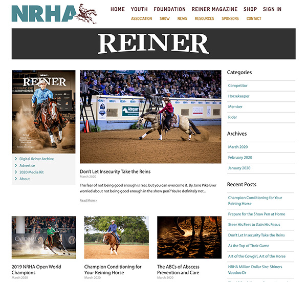 Take a spin around reiner.nrha.com, and let us know what you think by emailing reiner@nrha.com. The site presently hosts the January, February, and March 2020 articles, but look for more in the weeks to come. We’re excited to offer you Reiner content—and more—at your fingertips wherever you might need it.