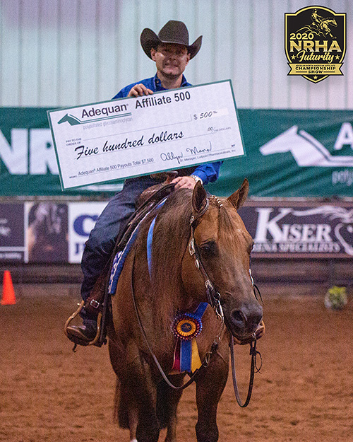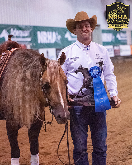 Schoeller expressed his gratitude to generous NRHA sponsors as well as the entire support team that helped him achieve the 2020 NAAC Open title. “Without the sponsors, the horse show wouldn’t be possible—especially Adequan® for sponsoring this affiliate championship,” Schoeller said. “Beth Himes for being such a great supporter; my wife Laura, she’s such a huge part of our business, my help and all my owners and the non pros that are in my barn. It takes a village… I couldn’t do it by myself, that’s for sure.”