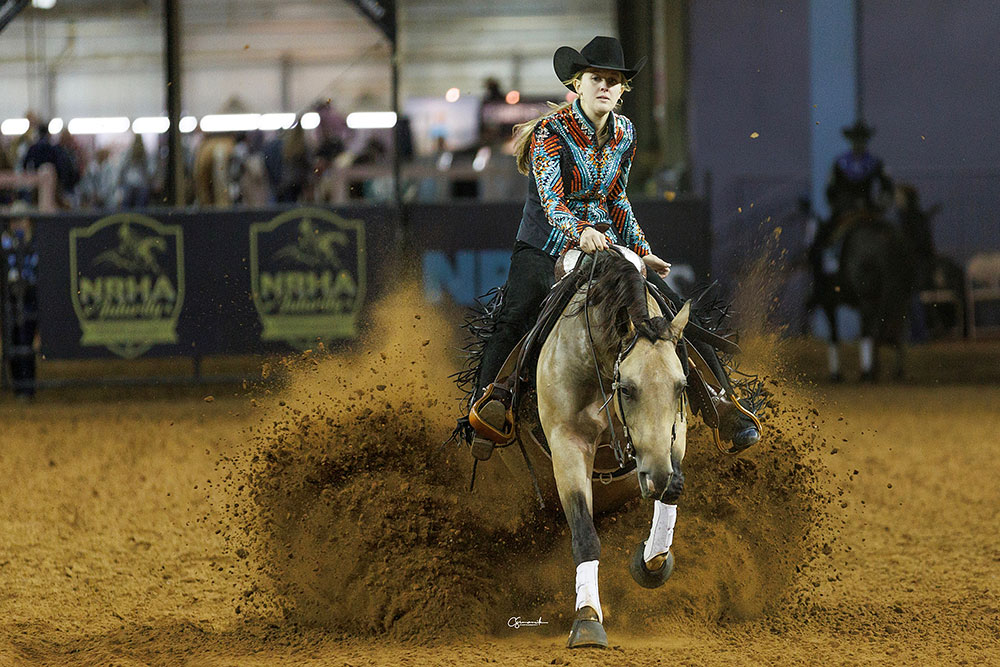 Gina-Marie Schumacher captured her first NRHA Non-Pro Futurity Title Friday night, Dec. 2, during a high-energy CINC Non Pro Finals. Marking a 222.5, NRHA Million Dollar Rider Schumacher tied with William Clutter for the win. Schumacher earned $60,000 for the feat and an additional $28,707 on her other two horses.
