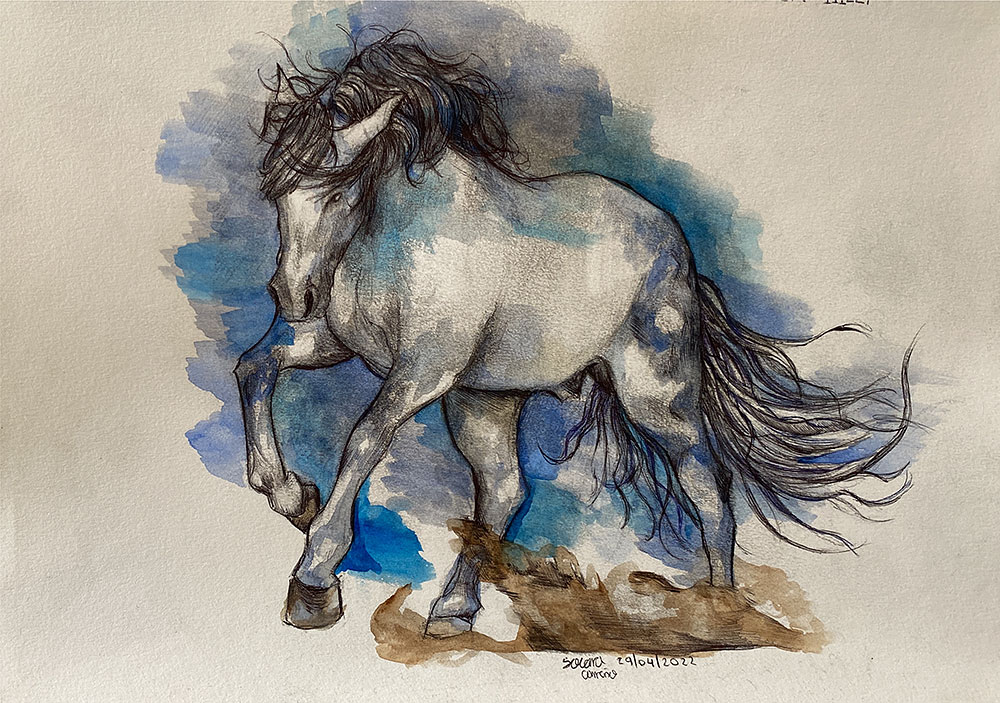 The 2022 NRHyA Art & Photo Contest featured tough competition and a new age bracket, making the judges’ work harder than ever! A continued, special partnership with the National Cowboy and Western Heritage Museum allows the winning art to be displayed at the museum during the 6666 Ranch NRHA Derby presented by Markel. Thank you to our judges, NRHA Commissioner Gary Carpenter, Michael R. Grauer, McCasland Chair of Cowboy Culture/Curator of Cowboy Collections and Western Art at the National Cowboy & Western Heritage Museum; and Steve Miller, vice president, event marketing at NRHA Corporate Partner Montana Silversmiths. We encourage all NRHA members to take a trip to the beautiful museum during the Derby