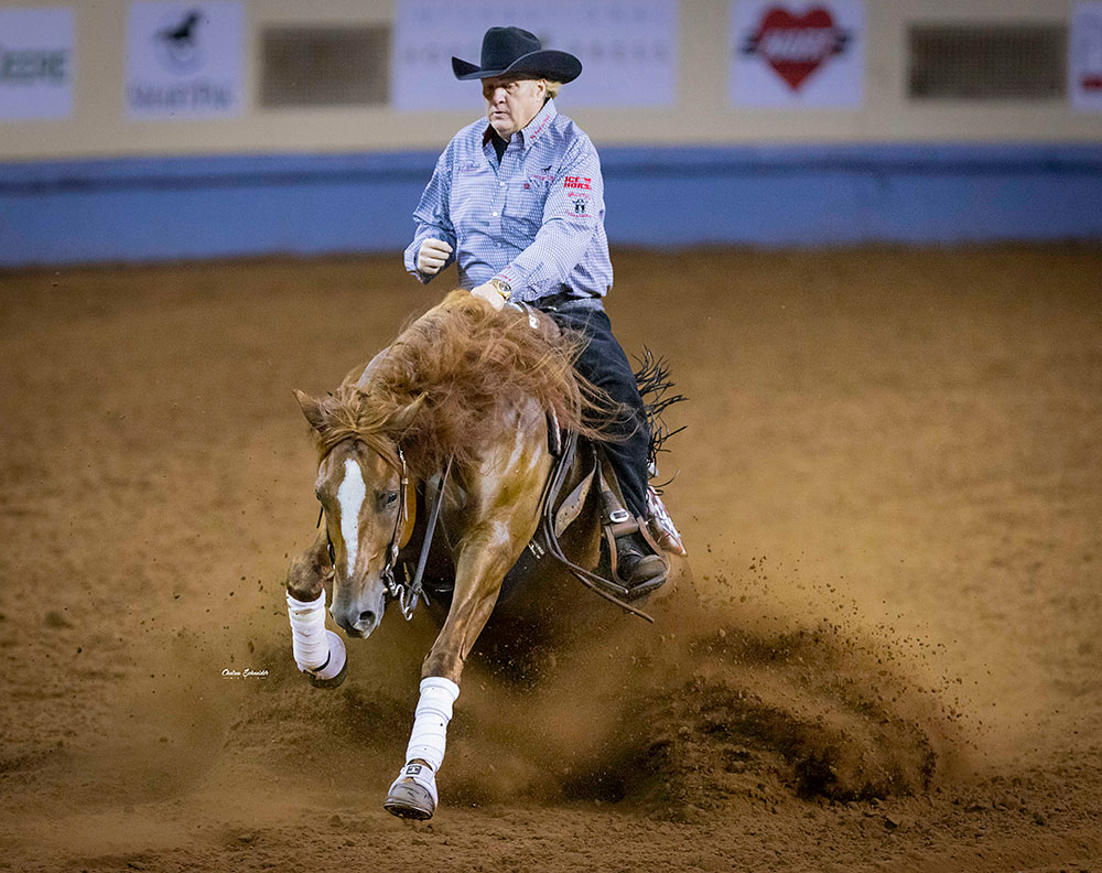 That achievement was reached at the North American Reining Stakes, held at the World Equestrian Center in Ocala, Florida. The Aubrey, Texas, trainer piloted Gold Star Gunner (Gunners Special Nite x Belle Starr Dun It), a horse he owns with his wife, Mandy, to the Level 3 Open Championship and a fourth-place finish in the Level 4, collecting more than $28,000. Those earnings alone would have been enough to pass two million, but McCutcheon also finished in the money on his and Mandy’s other entry, Best Jac (Jacs Electric Spark x Snip O Chex), for an additional $3,771.